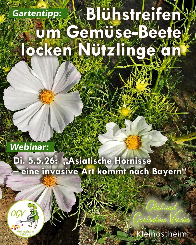Einige unserer heimischen Wildpflanzen sind Kaltkeimer. Sie benötigen also einen mehrwöchigen Kältereiz, damit sie keimen können. Ob Storchschnäbel, Odermennig oder auch Natternkopf – wer diese Pflanzen aussäen möchte, sollte das noch im Februar tun und die Aussaaten nach draußen stellen. Tipp: Alternativ kann man das Saatgut in feuchtem Sand eingelegt einige Wochen in den Kühlschrank legen. Jahreshauptversammlung am Sonntag 22. März 2026 Unsere diesjährige Jahreshauptversammlung findet am Sonntag 22. März 2026 um 15.00 Uhr am Vereinsheim, Ahornweg, statt. Die Tagesordnung wurde im Mitteilungsblatt Kleinostheim Ausgabe 07 vom 13.02.2026 bekannt gegeben. Beginn: 15.00 UhrOrt: Vereinsheim, Ahornweg Tagesordnungspunkte