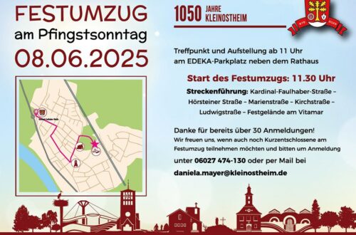 Anlässlich der Feierlichkeiten zu 1050 Jahre Kleinostheim lädt die Gemeinde zu einem Tag der Begegnung am 12. Januar 2025 ein.