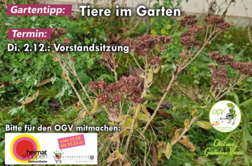 Das wäre doch eine Gelegenheit, beim nächsten Gartentreff am Vereinsheim mal nachzusehen, wer sich dort aus der Insektenwelt so zeigt.